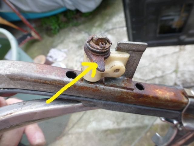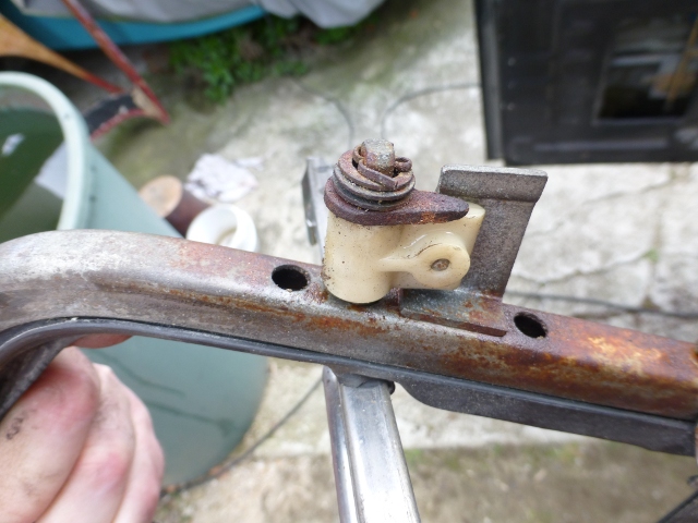 Montmorency m'avait bien conseill? de ne pas y toucher, sauf ? avoir une pi?ce de remplacement en bon ?tat. Le conseil ?tait excellent, c'est pourquoi je m'?tais content? de "prolonger" les pi?ces en place, ? l'aide bonnes couches de peinture hammerite...