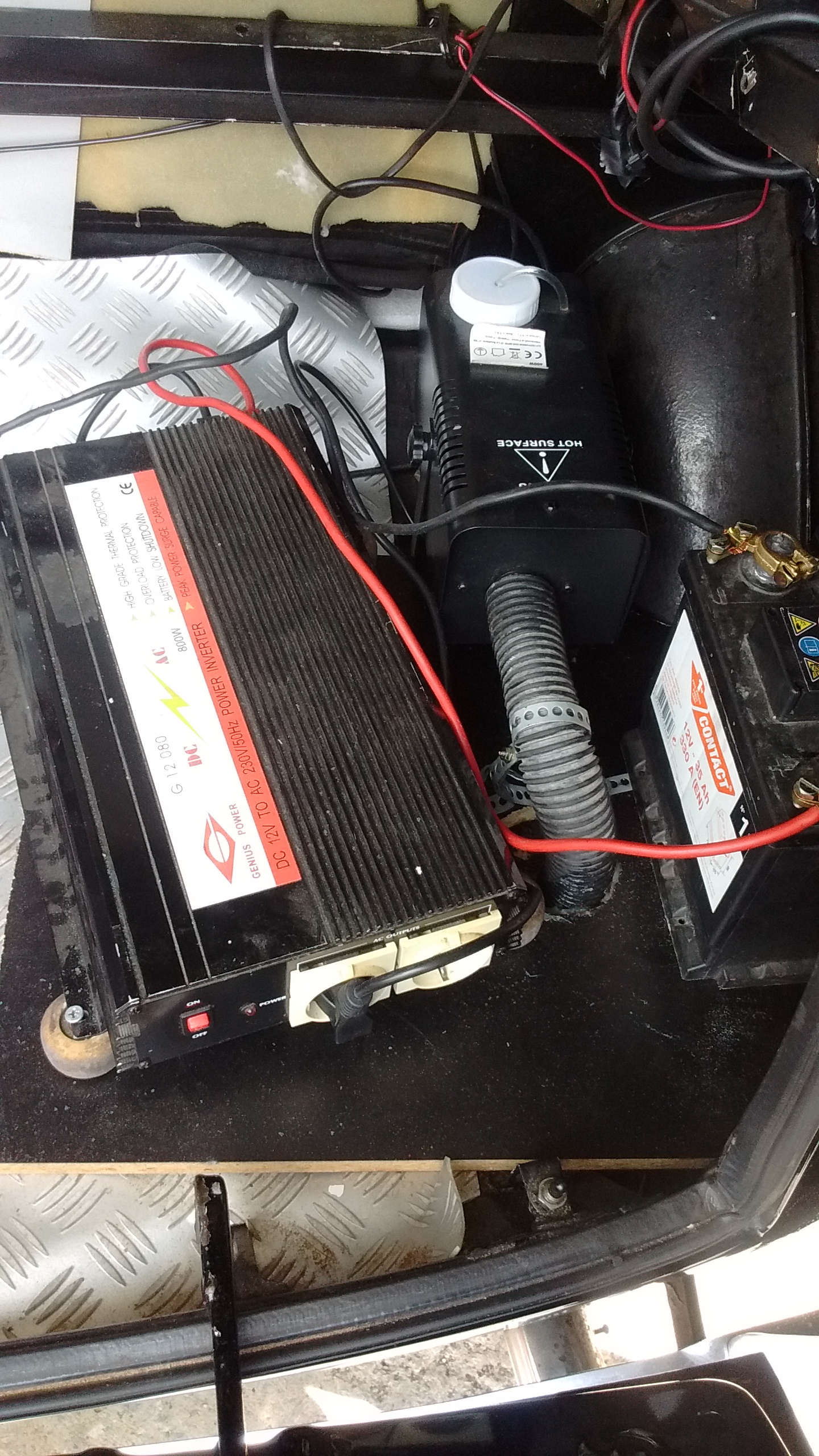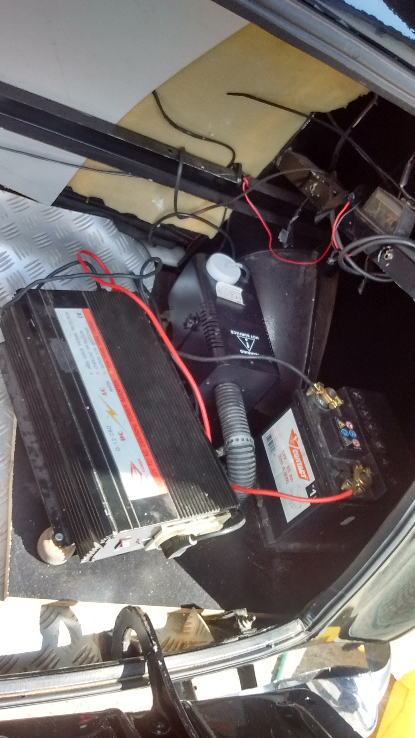 quelqu'un m'a mis dans le coffre une batterie de voiture un convertisseur 12V/220V et une machine a fum?e
