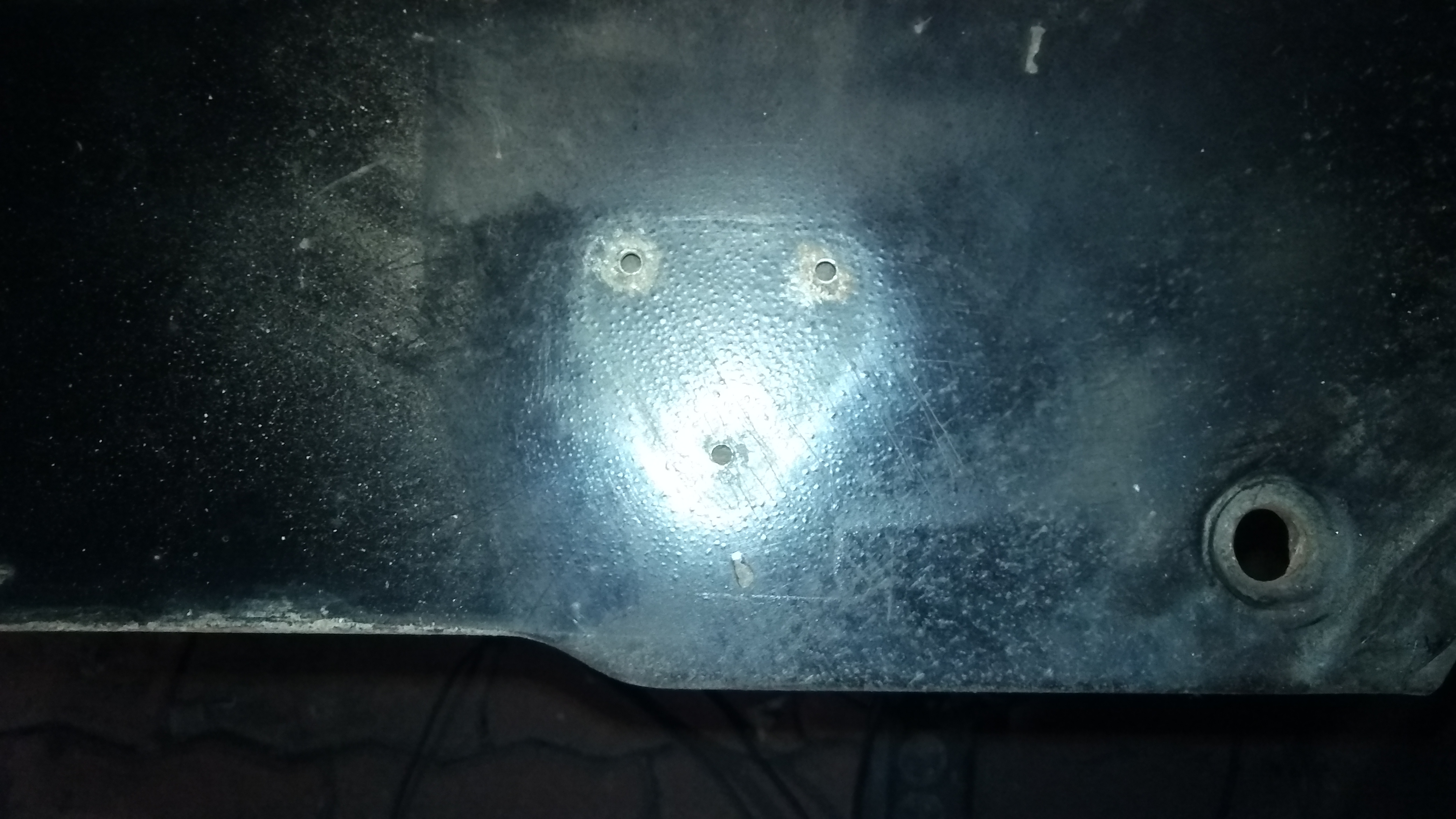 En d?montant la calandre, j'ai du me rendre ? l'?vidence, le bas du capot a pris cher ?galement..