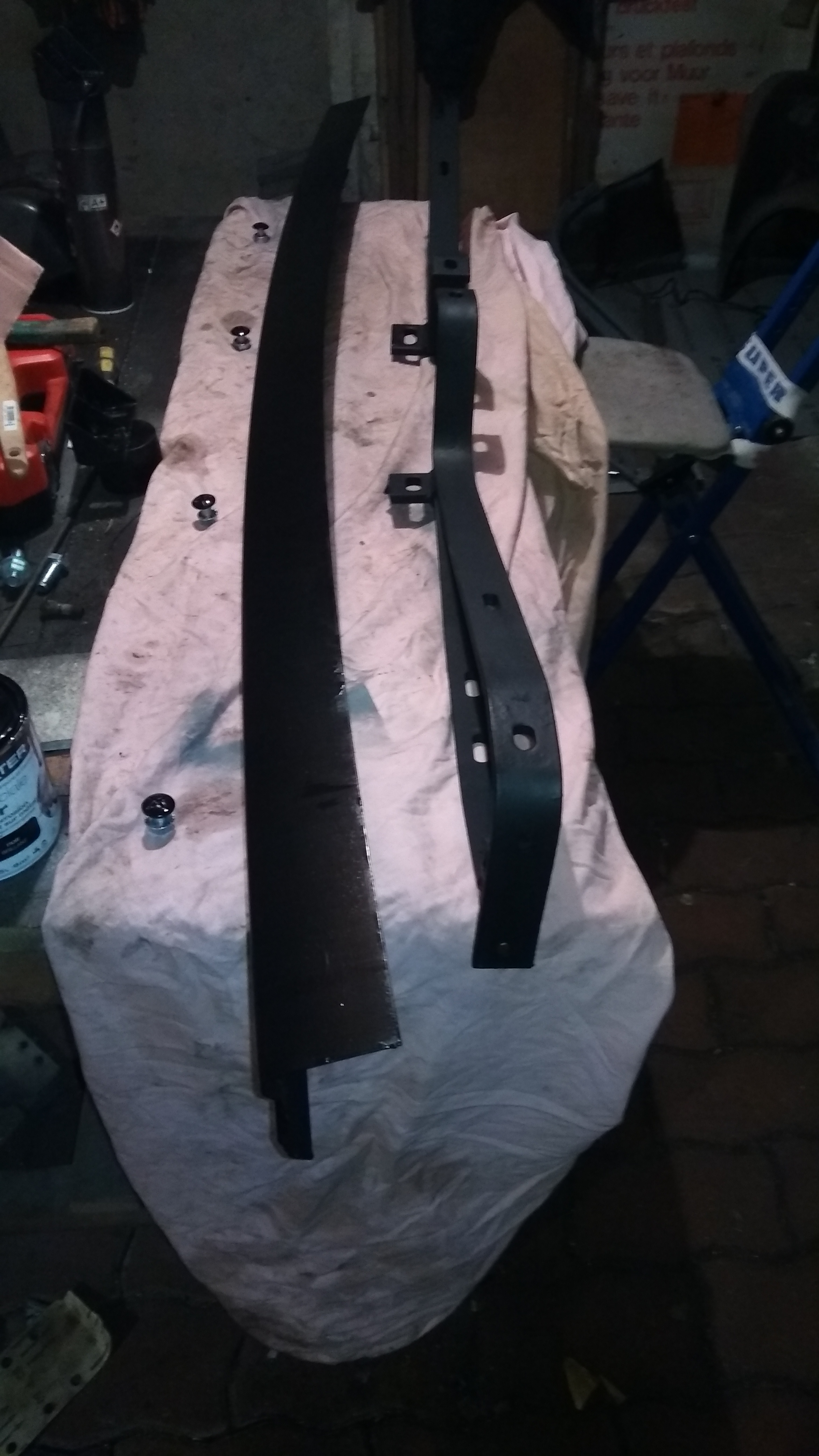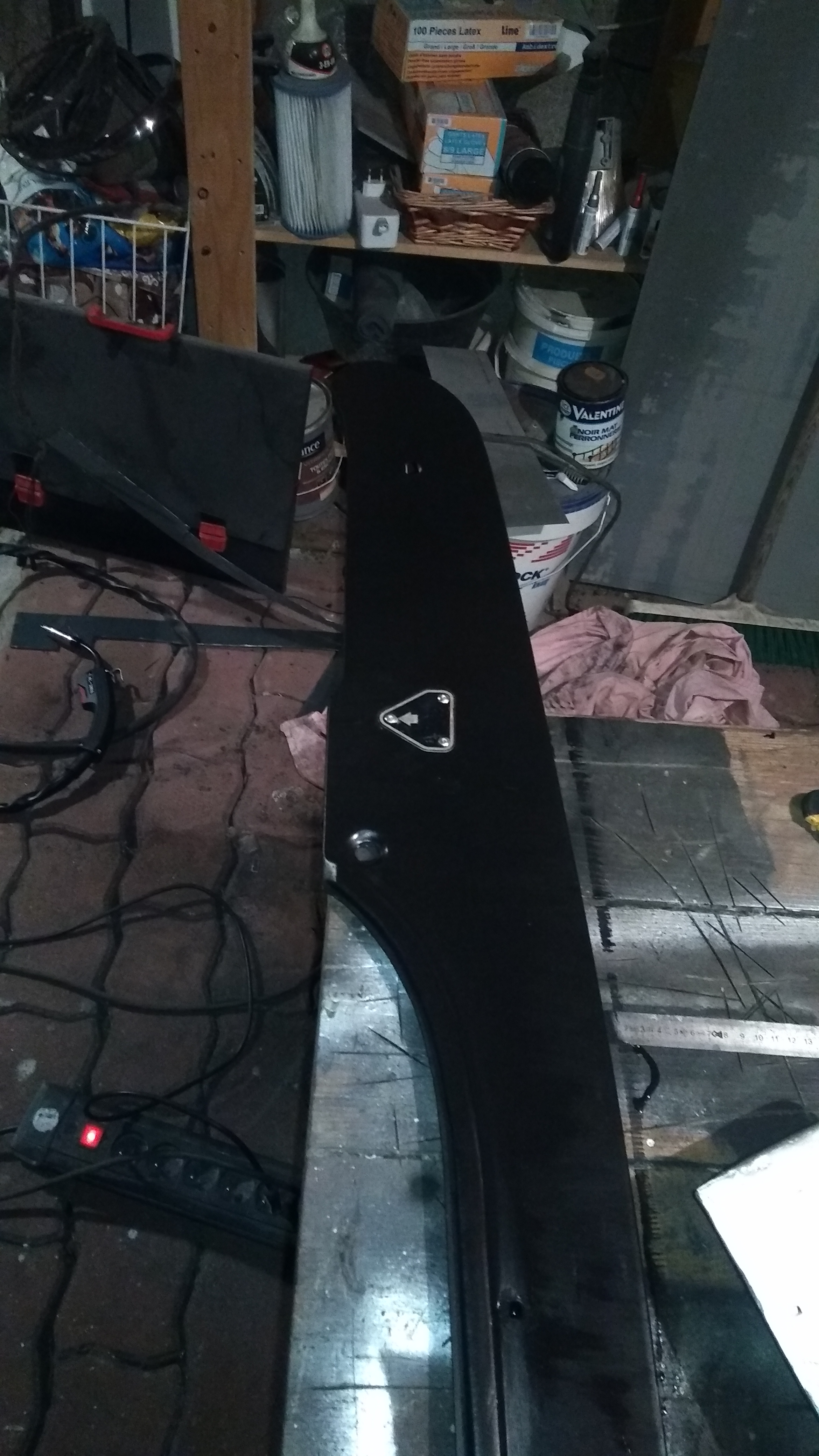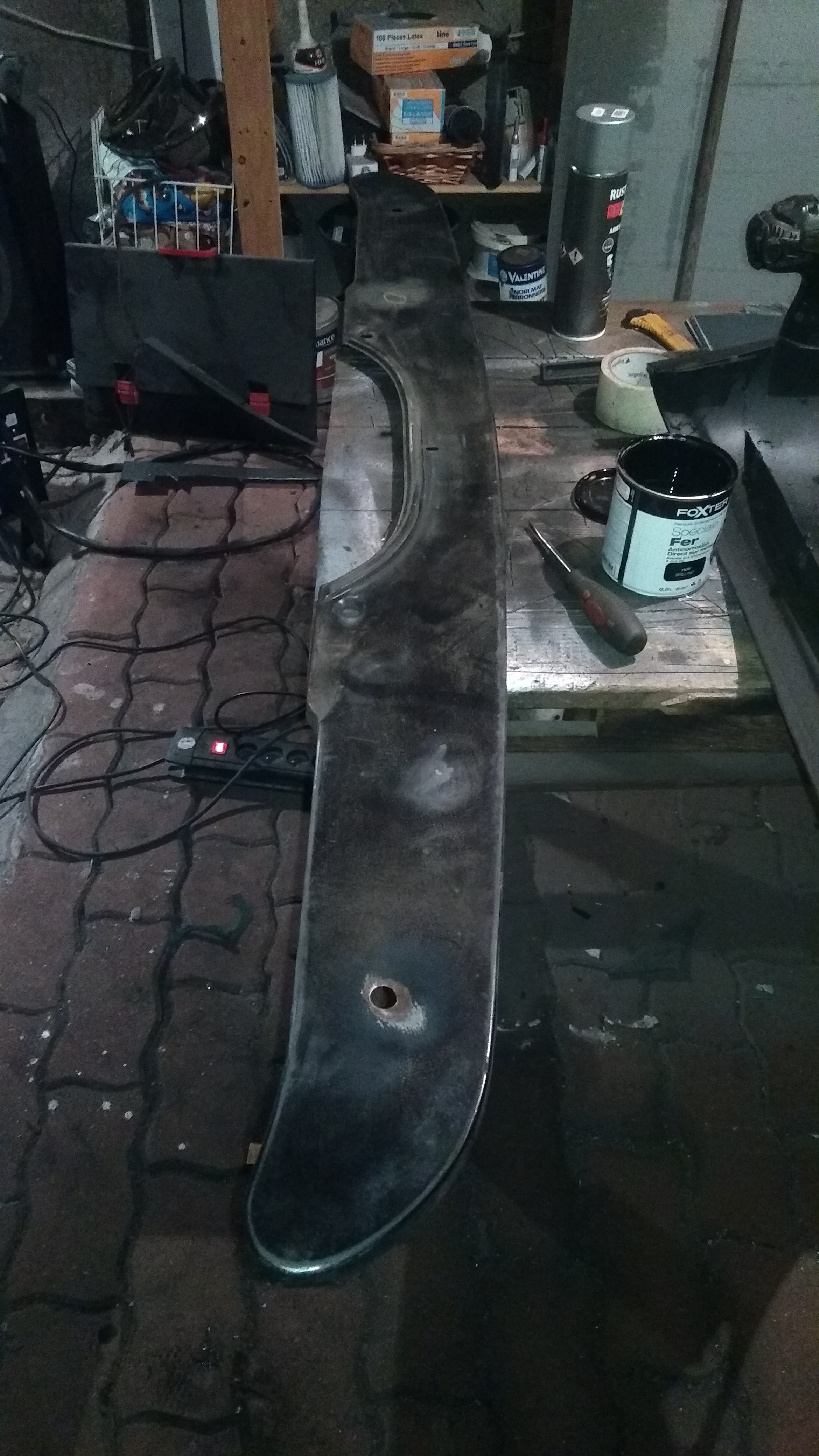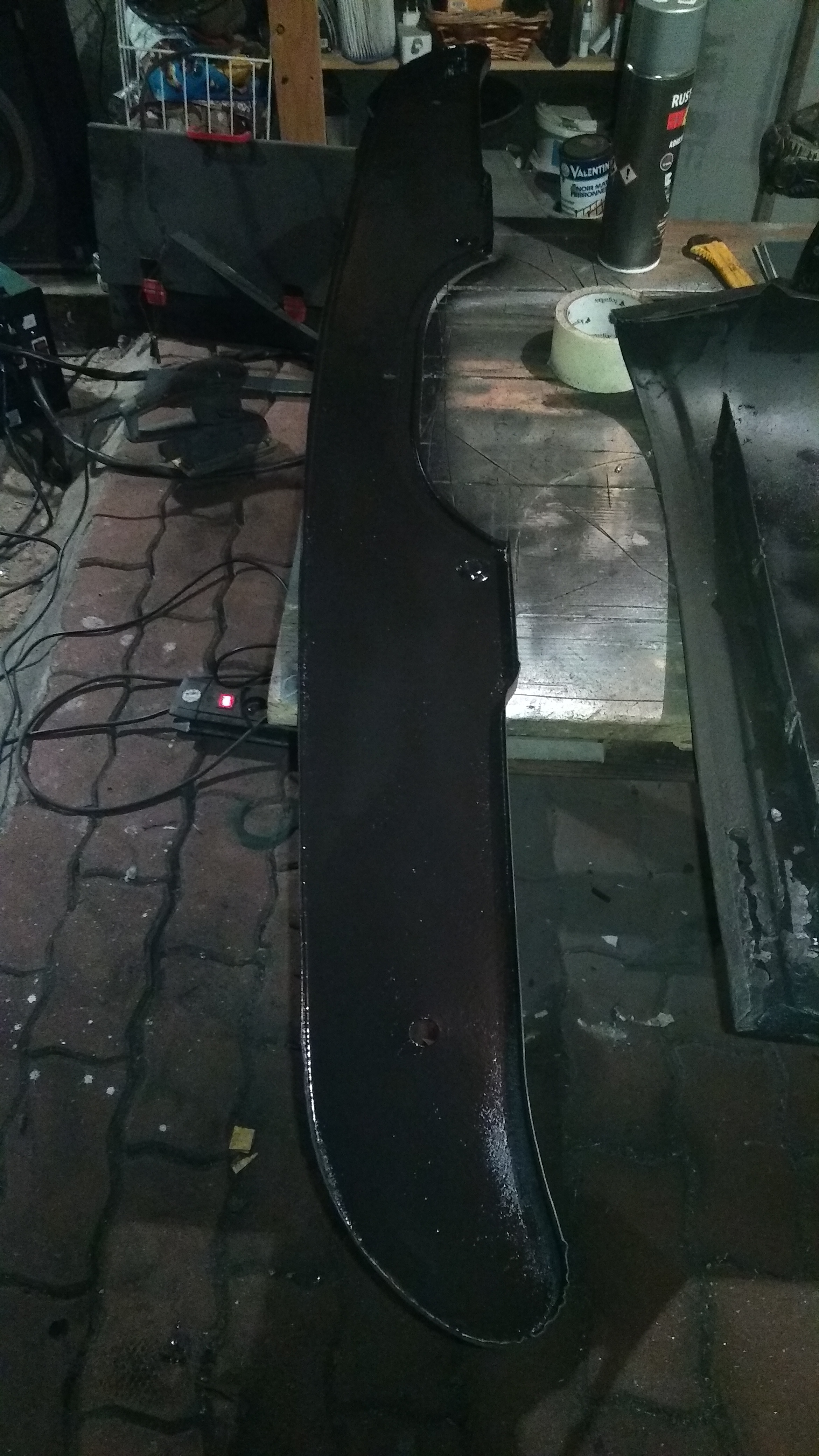 J'ai termin? par 2 couches de peinture antirouille ? l'exterieur. Sorry, pas de photos, je l'ai fait juste avant d'aller me coucher...