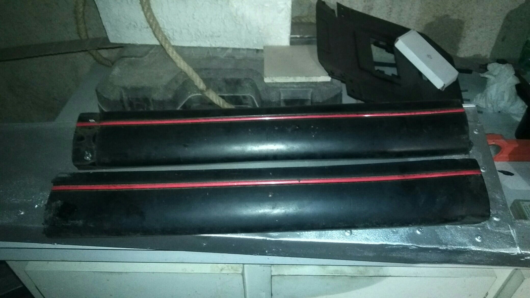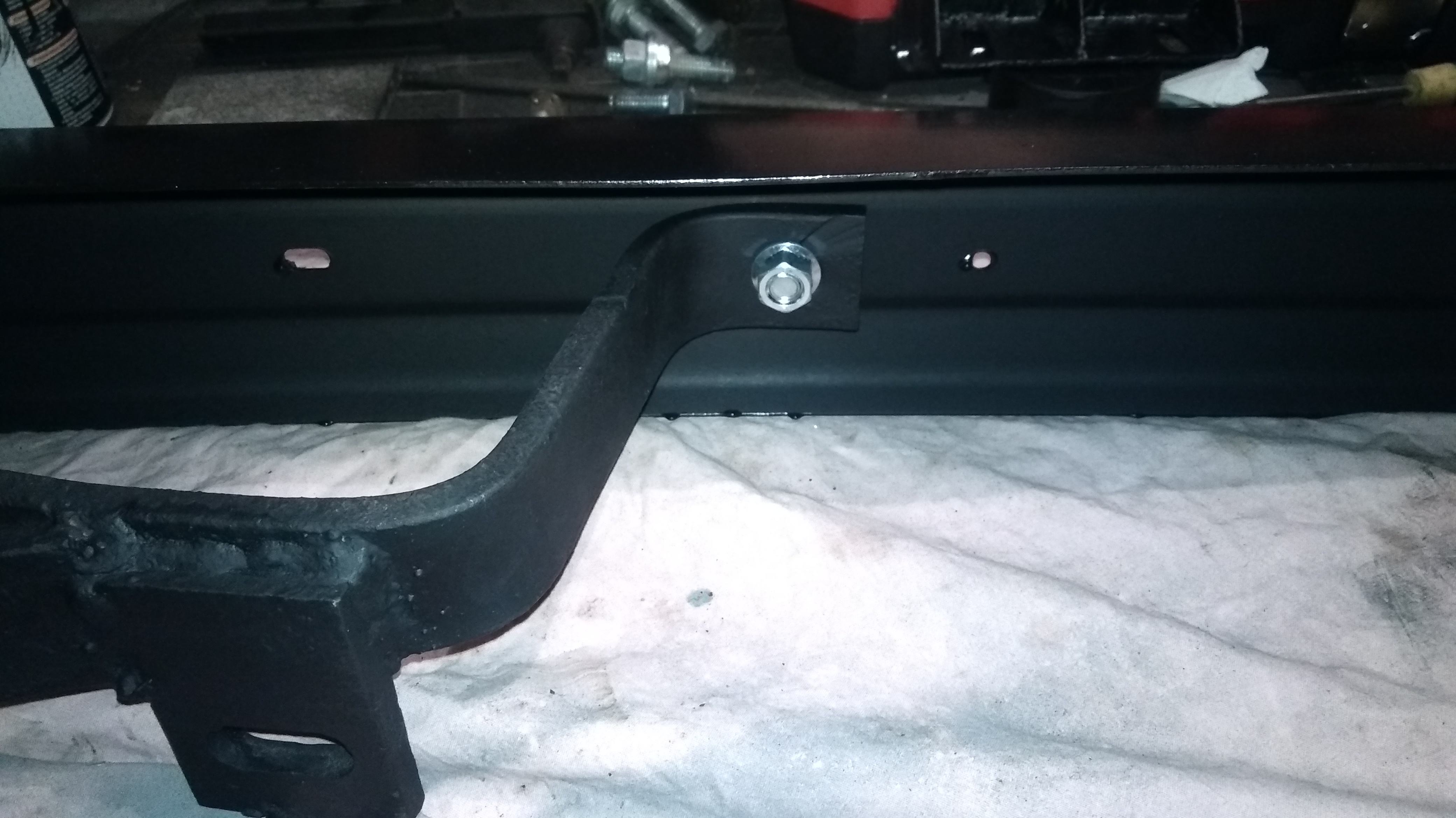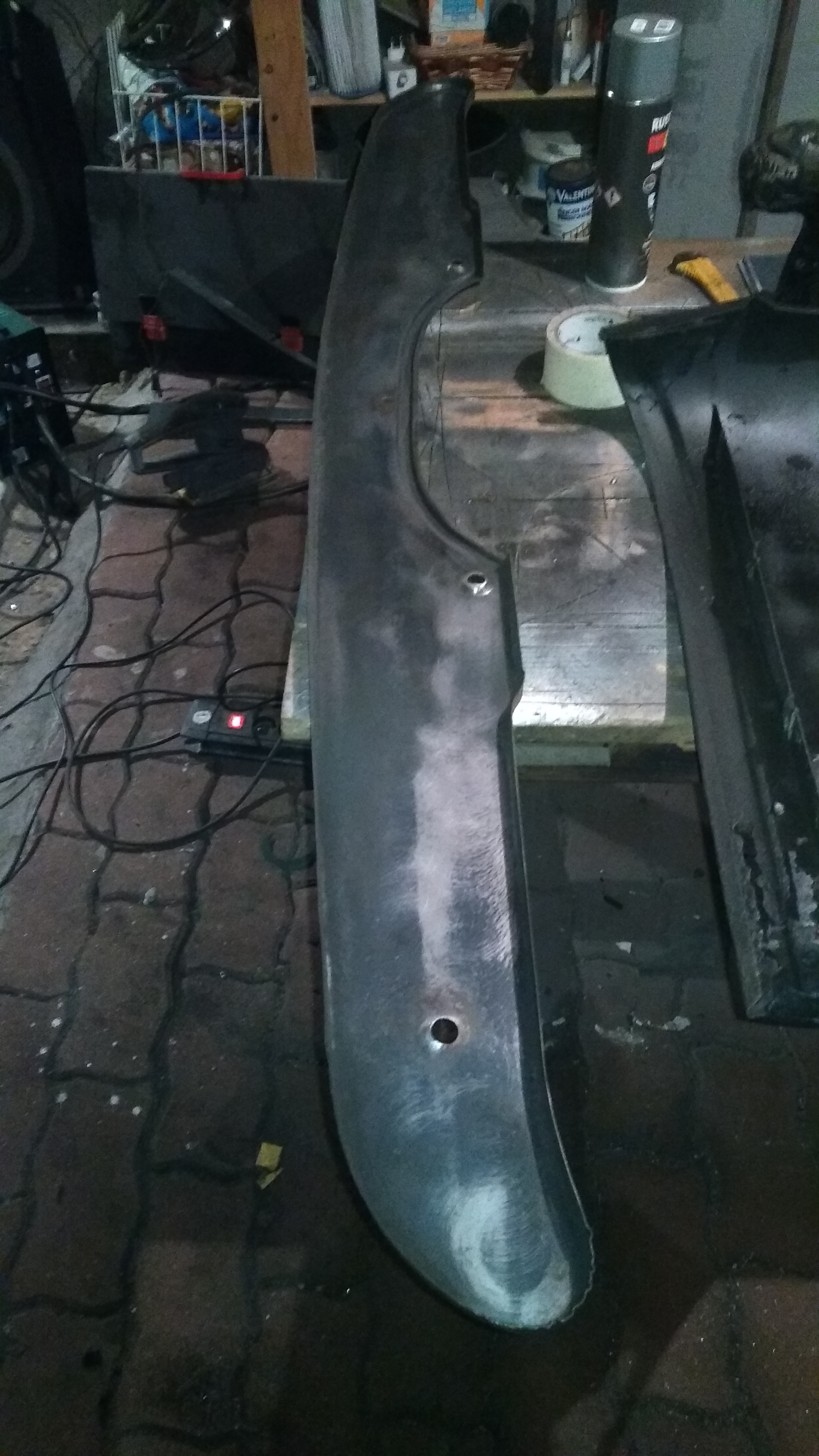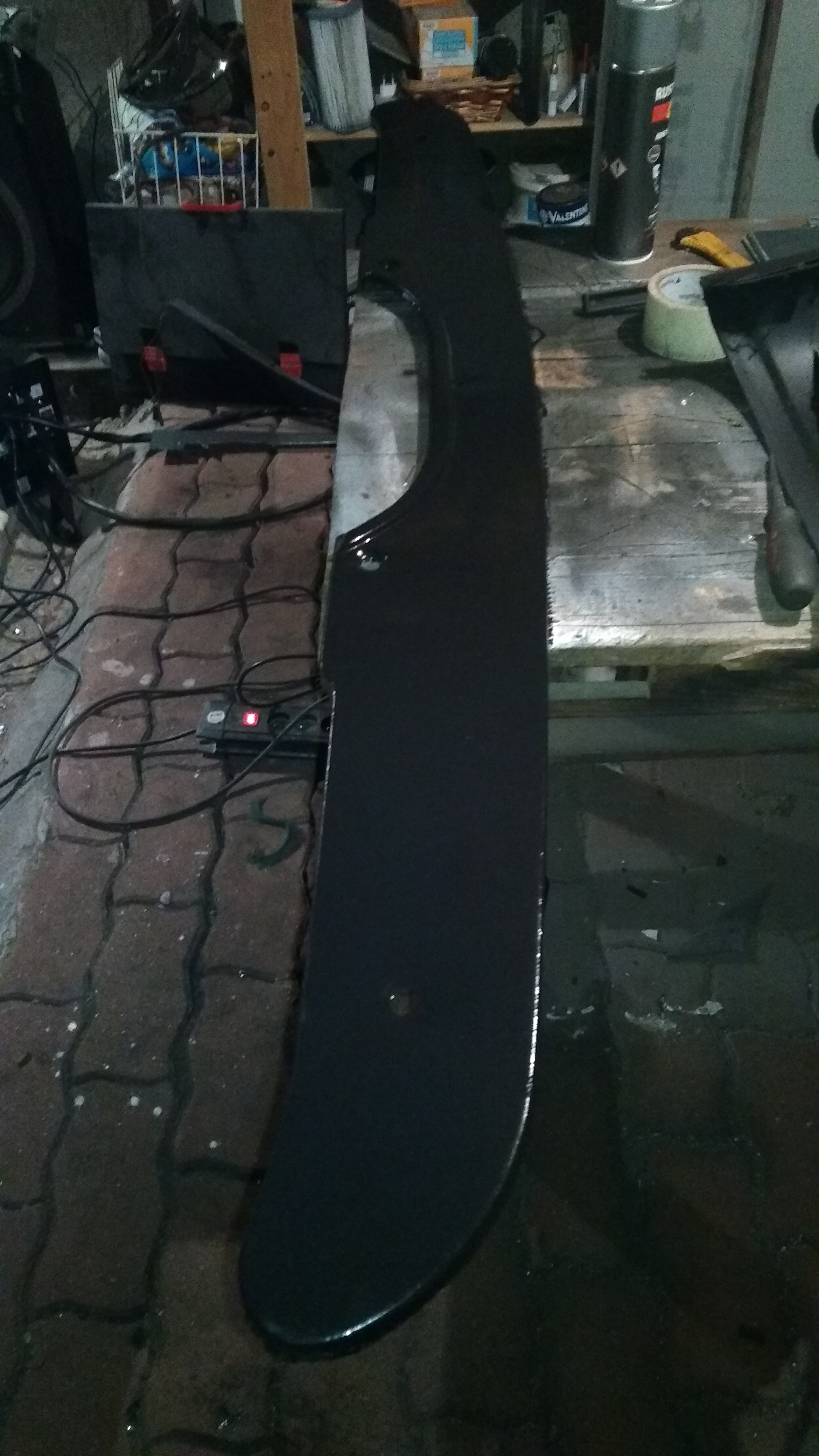 J'ai termin? par 2 couches de peinture antirouille ? l'exterieur. Sorry, pas de photos, je l'ai fait juste avant d'aller me coucher...