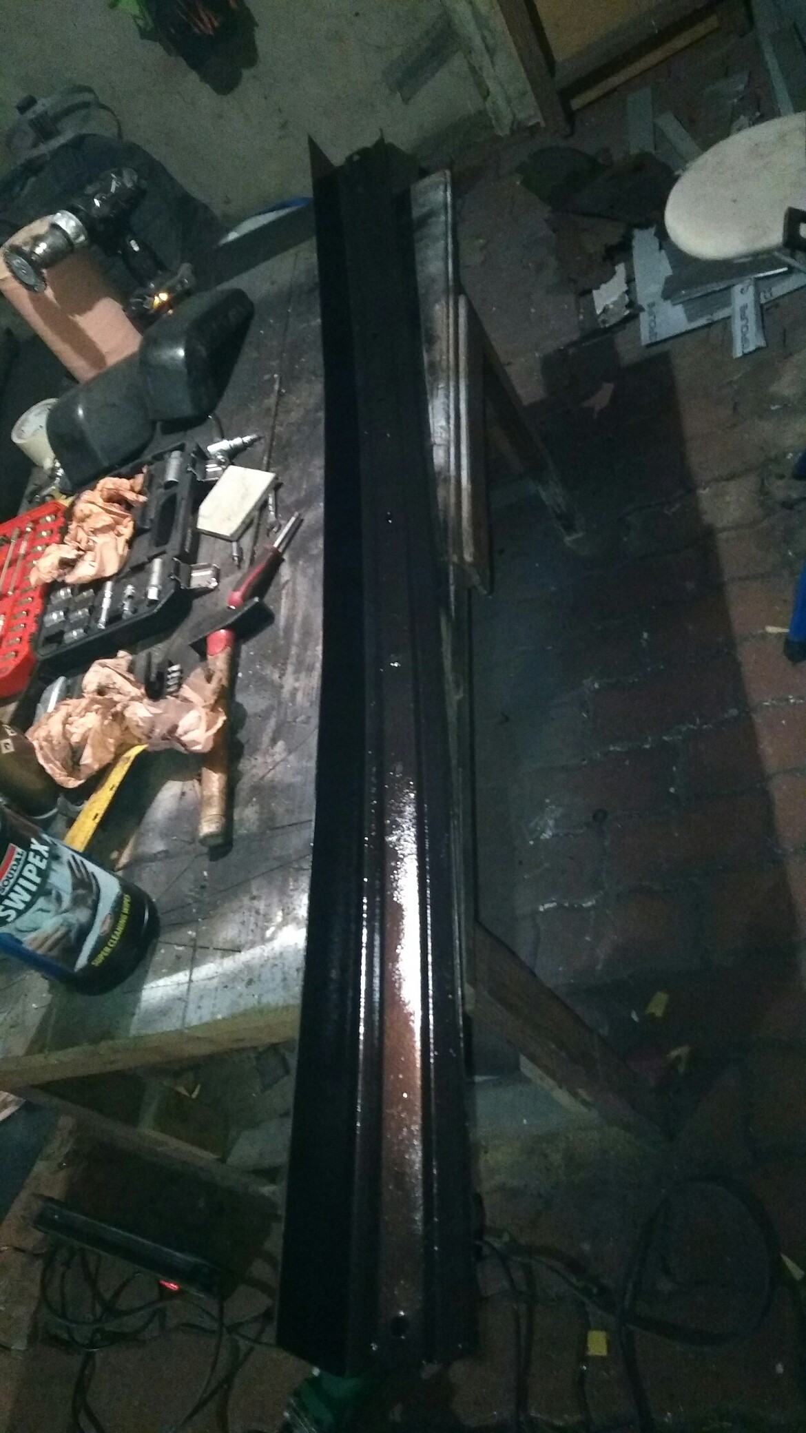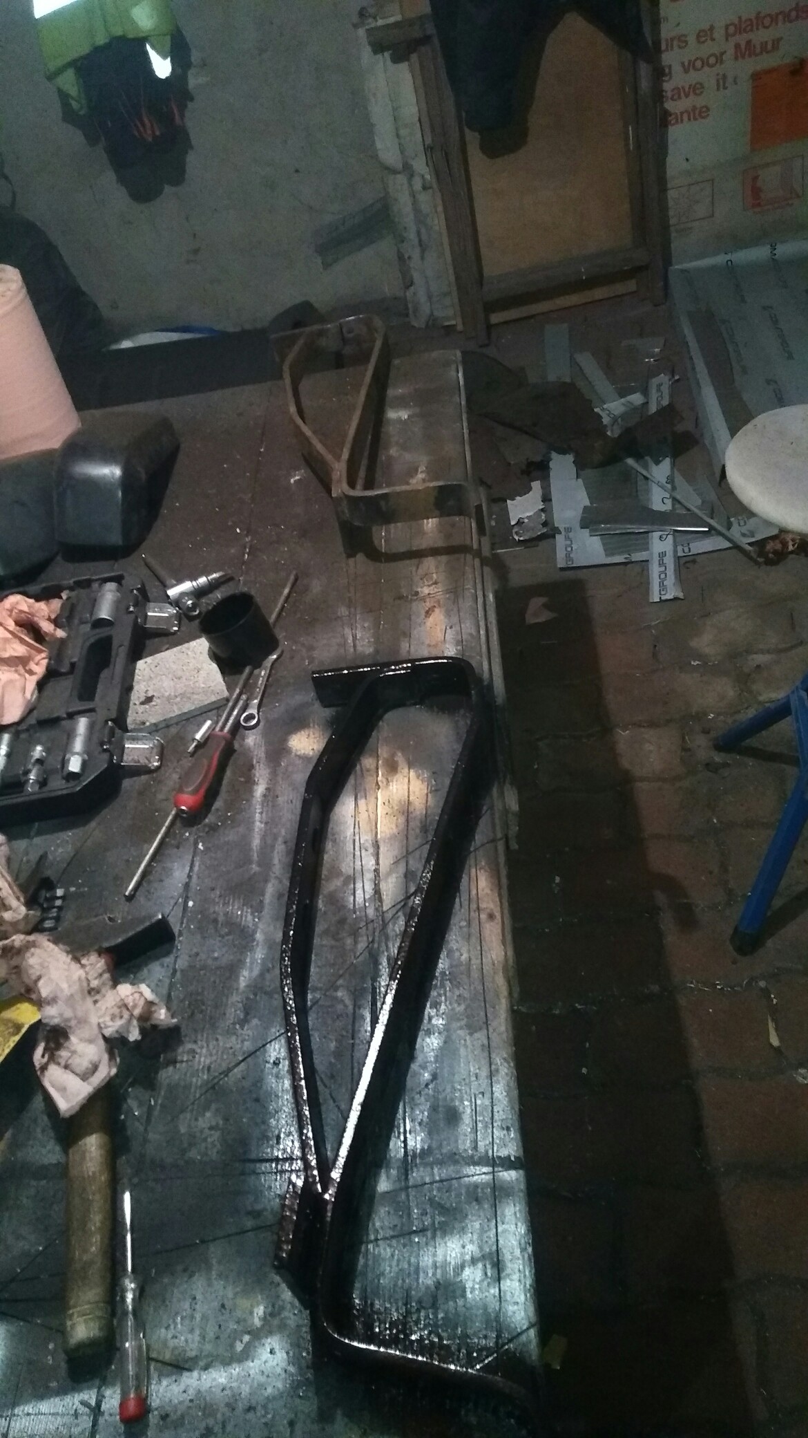 J'ai, pour le moment, gratt? et pass? une couche d'antirouille. J'y reviendrait plus tard car je dois d?poter le si?ge et c'est pas simple, il est solidement cramponn? le bougre