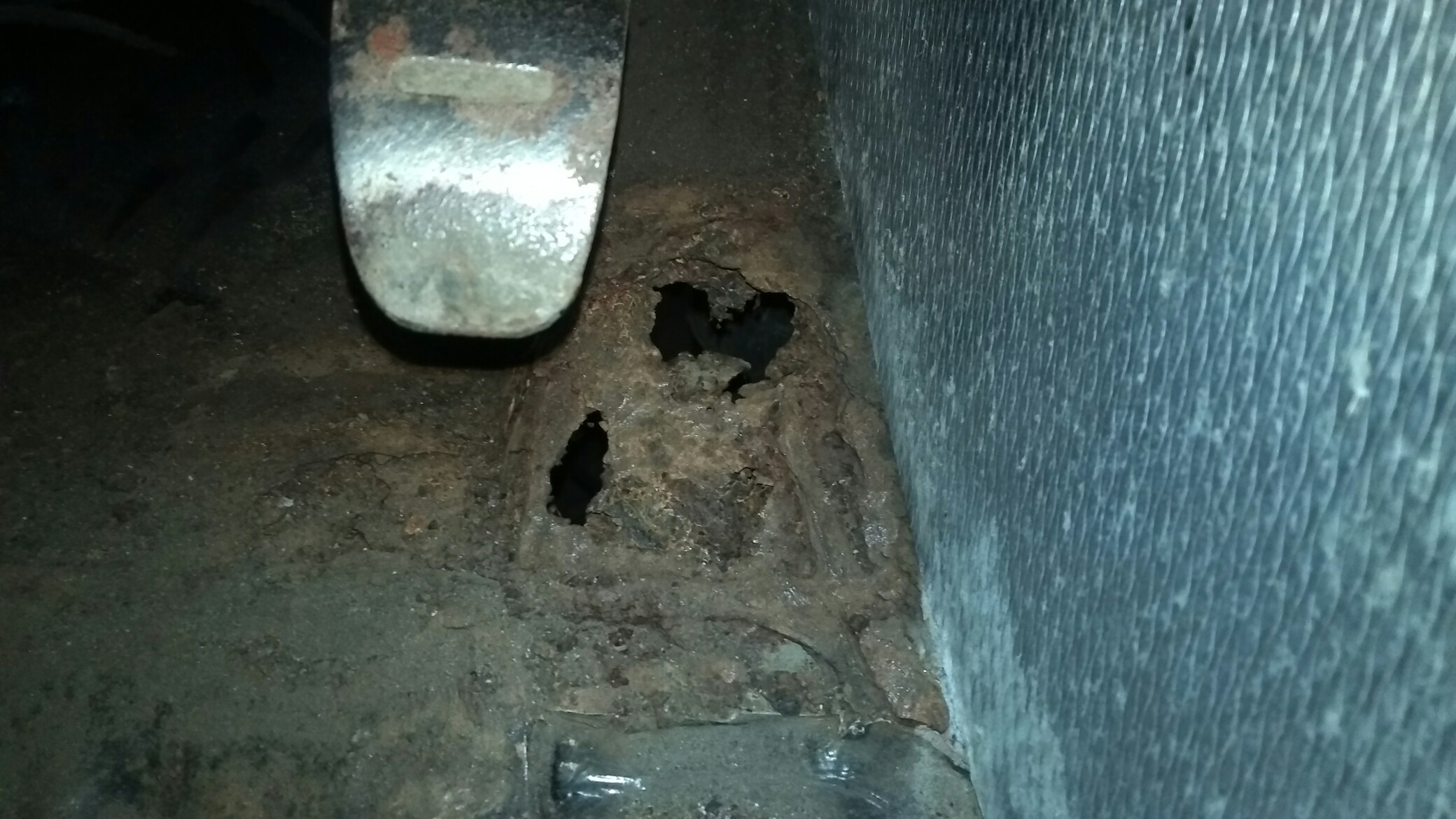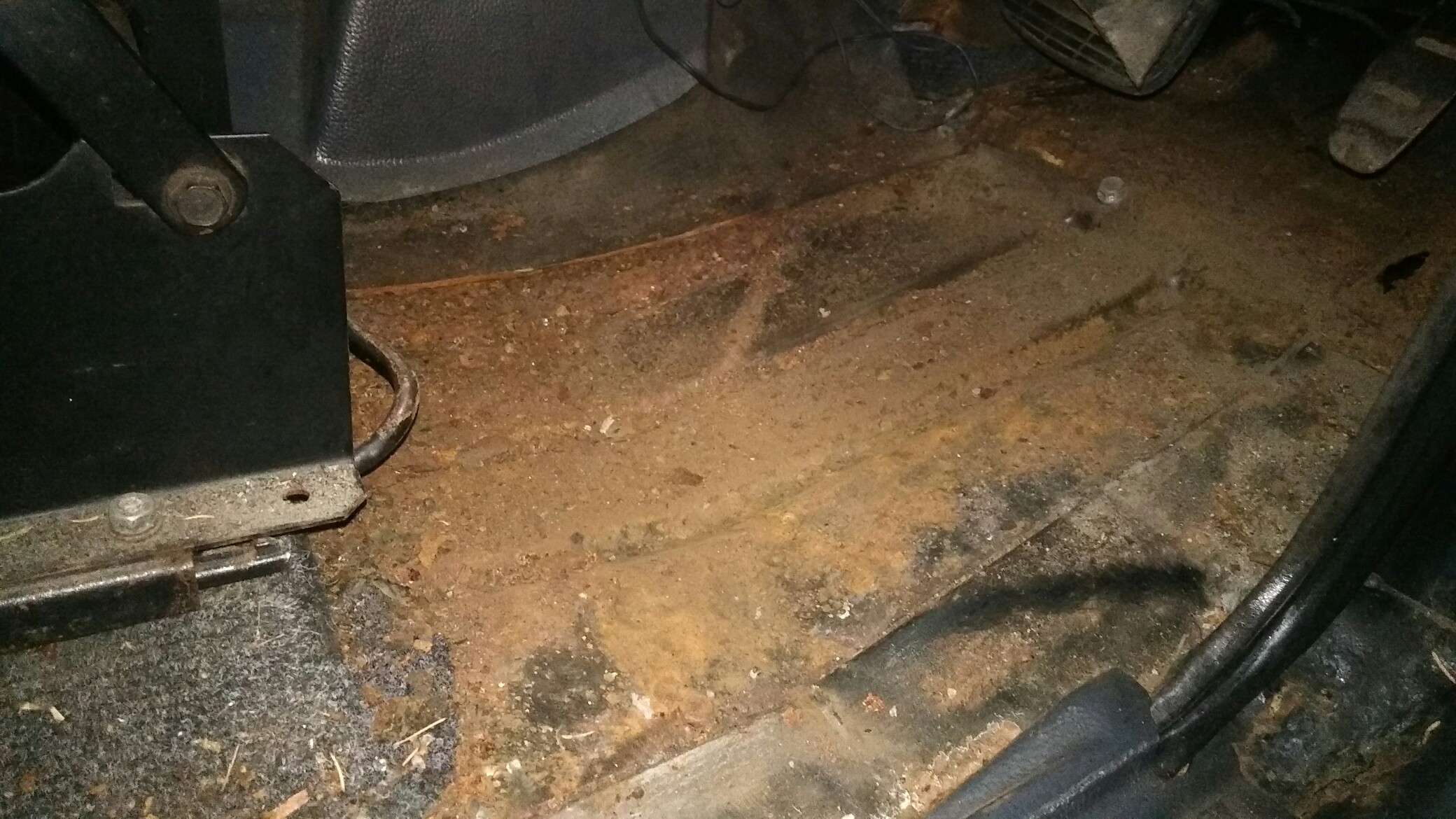 En levant le moquette (d?coll?e) du support du si?ge, j'ai pu constater qu'il est bouff? aussi...