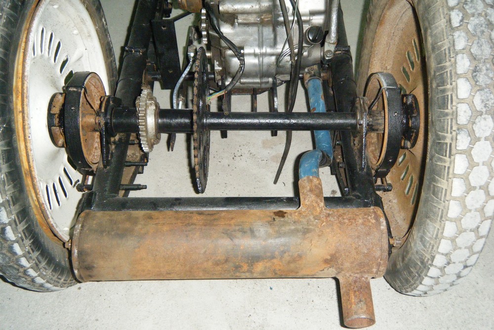 Le soucis : le silencieux d'origine de la mochet est au dessus de l'arbre de roue. Alors que la sortie du moteur est sous l'arbre de roue. Hummmmmmmmmmmm