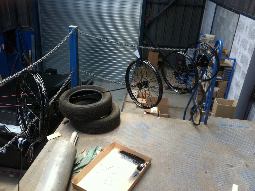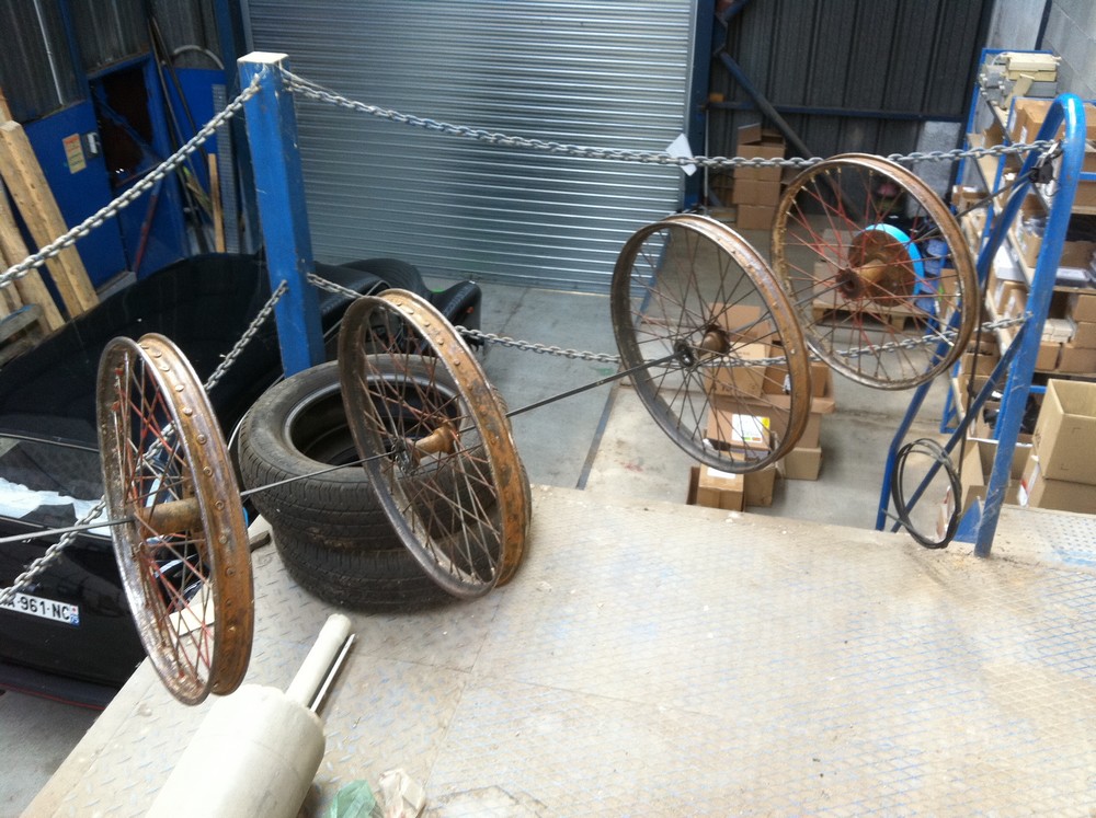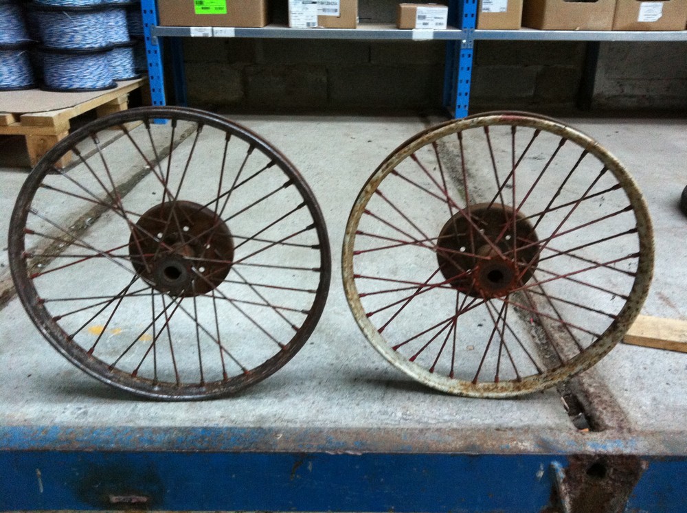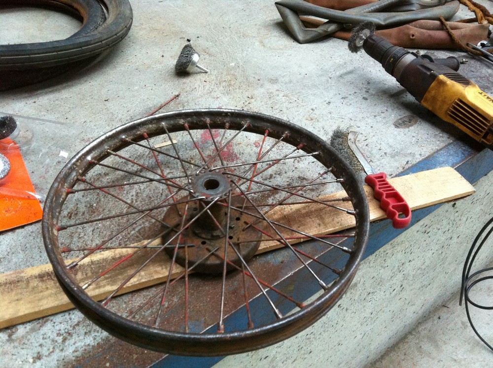 Allez au jantes maintenant. Il y avait des rayons cass?s et une jante de mobylette trouv? a la d?charge va faire don de pi?ce bien utile.